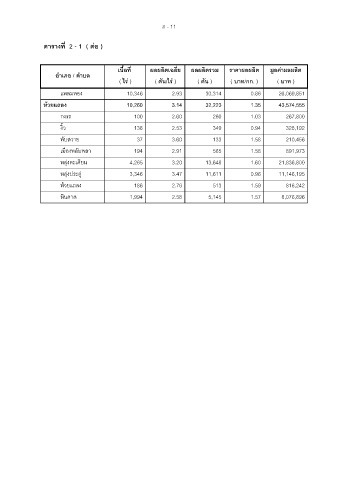 เนื้อที่ ผลผลิตเฉลี่ย ผลผลิตรวม ราคาผลผลิต มูลคาผลผลิต