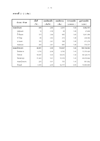 เนื้อที่ ผลผลิตเฉลี่ย ผ ล ล ตรวม ราคาผลผลิต ม ู ลคาผลผลิต