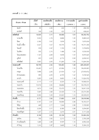 เนื้อที่ ผลผลิตเฉลี่ย ผ ล ล ิ ผ ตรวม ราคาผลผลิต ม ู ลคาผลผลิต
