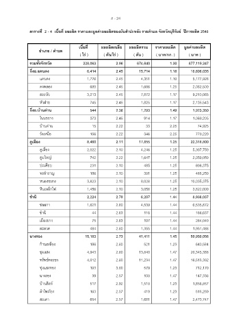 เนื้อที่ ผลผลิตเฉลี่ย ผ ล ล ิ ผ ตรวม ราคาผลผลิต ม ู ลคาผลผลิต