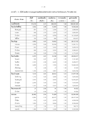 ตารางที่ 2 - 5 เนื้อที่ ผลผลิต ราคาและมูลคาผลผลิตของมันสําปะหลัง รายตําบล จังหวัดขอนแกน ปการผลิต 2548