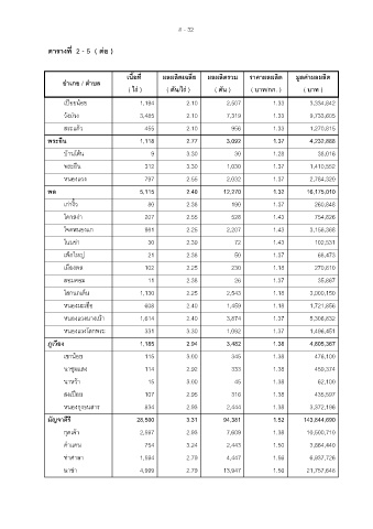 เนื้อที่ ผลผลิตเฉลี่ย ผ ล ล ตรวม ราคาผลผลิต ม ู ลคาผลผลิต