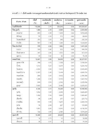 ตารางที่ 2 - 7 เนื้อที่ ผลผลิต ราคาและมูลคาผลผลิตของมันสําปะหลัง รายตําบล จังหวัดอุดรธานี ปการผลิต 2548