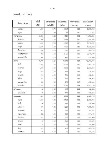 เนื้อที่ ผลผลิตเฉลี่ย ผ ล ล ิ ผ ตรวม ราคาผลผลิต ม ู ลคาผลผลิต