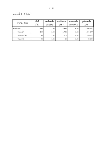 เนื้อที่ ผลผลิตเฉลี่ย ผ ล ล ตรวม ราคาผลผลิต ม ู ลคาผลผลิต