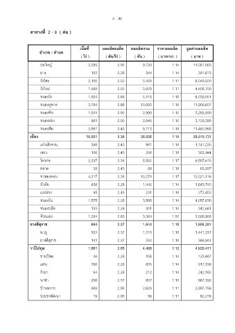 เนื้อที่ ผลผลิตเฉลี่ย ผ ล ล ตรวม ราคาผลผลิต ม ู ลคาผลผลิต