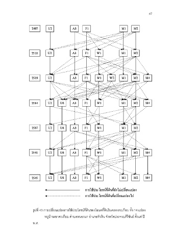 67 รูปที่ 43 การเปลี่ยนแปลงการใชประโยชนที่ดินของโฉนดที่ดินริมคลองตะเกียบ ทั้ง 14 แปลง หมูบานเขาตะเกียบ ตําบลหนองแก อําเภอหัวหิน จังหวัดประจวบคีรีขันธ ตั้งแต ป พ.ศ.