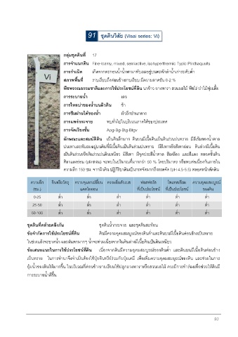 ลักษณะและสมบัติดิน เปนดินลึกมาก ดินบนมีเนื้อดินเปนดินรวนปนทราย มีสีเขมของน้ําตาล