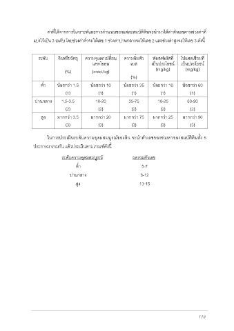 คาที่ไดจากการวิเคราะหและการคํานวณของแตละสมบัติดินจะนํามาใหคาตัวเลขตามชวงคาที่