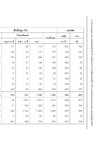 พื้นที่ปลูก (ไร) ใหผลผลิตแลว อายุ > 12 ป 56 53 27 31 75 12 8 17 42 321 1267 183 1,142 58 308