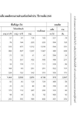 ตารางที่ 8 ลําไย: พื้นที่ปลูก พื้นที่ยังไมใหผลผลิต พื้นที่ใหผลผลิต ผลผลิตเฉลี่ย ผลผลิตรวมรายตําบลจังหวัดลําปาง ปการผลิต 2549