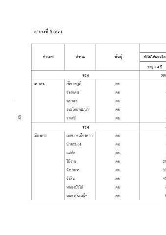 ยังไมใหผลผลิต ใหผลผลิตแลว รวม เฉลี่ย รวมทั้งหมด ตัน กก./ไร รวม อายุ > 12 ป อายุ 4-12 ป อายุ < 4 ป 1,676 562 436 1,289 371 918 387 88 51 575 88 26 62 - 1,196 671 561 1,196 248 948 - 28 16 575 28 - 28 - 338 185 546 338 142 196 - 19 10 510 19 2 17 - 1,669 933 559 1,669 418 1,251 - 36 20 557 36 36 - - 50