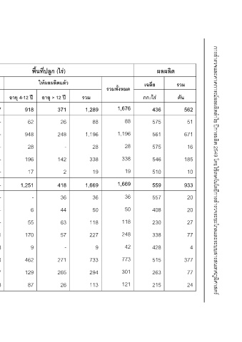 พื้นที่ปลูก (ไร) ใหผลผลิตแลว อายุ > 12 ป 371 26 248 - 142 2 418 36 44 63 57 - 271 265 26