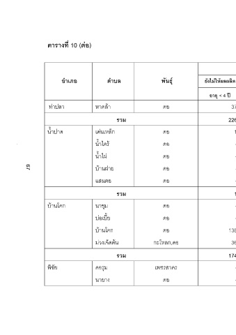 ยังไมใหผลผลิต ใหผลผลิตแลว รวม เฉลี่ย รวมทั้งหมด ตัน กก./ไร รวม อายุ > 12 ป อายุ 4-12 ป อายุ < 4 ป 488 558 912 875 65 810 37 3,132 532 6,111 5,885 2,382 3,503 226 112 535 211 210 180 30 1 130 480 270 270 270 - - 54 578 93 93 93 - - 107 590 182 182 34 148 - 303 501 605 605 11 594 - 706 519 1,361 1,360 588 7
