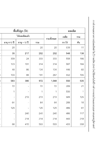 พื้นที่ปลูก (ไร) ใหผลผลิตแลว อายุ > 12 ป - 217 24 191 86 88 386 - - 213 - - 240 214 415