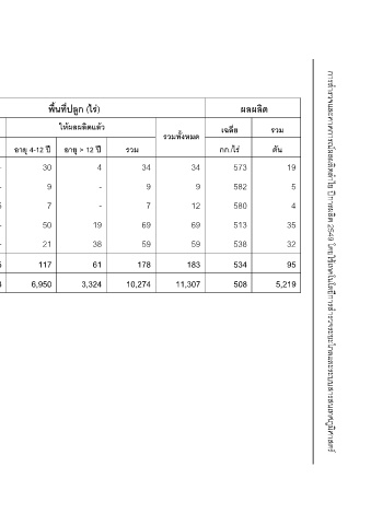 พื้นที่ปลูก (ไร) ใหผลผลิตแลว อายุ > 12 ป 4 - - 19 38 61 3,324