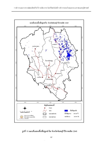 การสํารวจและคาดการณผลผลิตลําไย ปการผลิต 2549 โดยใชเทคโนโลยีการสํารวจระยะไกลและระบบสารสนเทศภูมิศาสตร รูปที่ 15 แผนที่แสดงพื้นที่ปลูกลําไย จังหวัดจันทบุรี ปการผลิต 2549 87 87