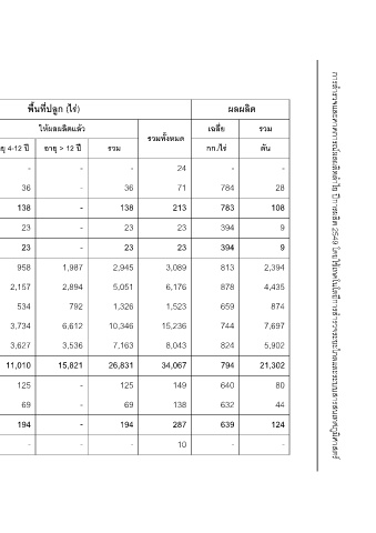 ยังไมใหผลผลิต อายุ < 4 ป 24 35 75 - - 144 1,125 197 4,890 880 7,236 24 69 93 10