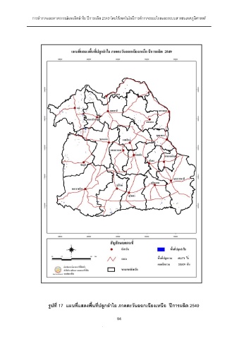 การสํารวจและคาดการณผลผลิตลําไย ปการผลิต 2549 โดยใชเทคโนโลยีการสํารวจระยะไกลและระบบสารสนเทศภูมิศาสตร รูปที่ 17 แผนที่แสดงพื้นที่ปลูกลําไย ภาคตะวันออกเฉียงเหนือ ปการผลิต 2549 94 94