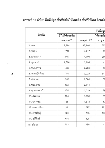 ตารางที่ 17 ลําไย: พื้นที่ปลูก พื้นที่ยังไมใหผลผลิต พื้นที่ใหผลผลิตแลว ผลผลิตเฉลี่ย ผลผลิตรวม ภาคตะวันออกเฉียงเหนือ ปการผลิต 2549