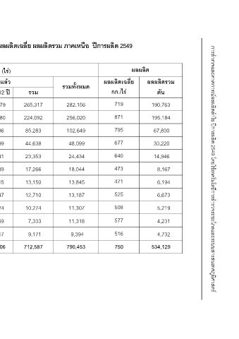 ผลผลิตรวม ตัน 190,763 195,184 67,800 30,220 14,946 8,167 6,194 6,673 5,219 4,231 4,732 534,129