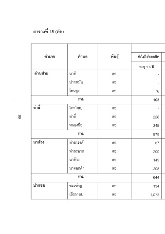 ยังไมใหผลผลิต ใหผลผลิตแลว รวม เฉลี่ย รวมทั้งหมด ตัน กก./ไร รวม อายุ > 12 ป อายุ 4-12 ป อายุ < 4 ป 110 266 415 415 - 415 - 75 250 301 301 - 301 - 90 260 422 346 47 299