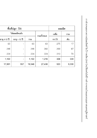 พื้นที่ปลูก (ไร) ใหผลผลิตแลว อายุ > 12 ป - - - - 557