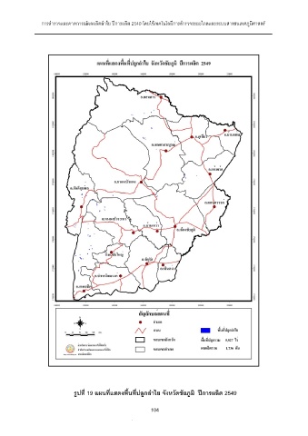 การสํารวจและคาดการณผลผลิตลําไย ปการผลิต 2549 โดยใชเทคโนโลยีการสํารวจระยะไกลและระบบสารสนเทศภูมิศาสตร รูปที่ 19 แผนที่แสดงพื้นที่ปลูกลําไย จังหวัดชัยภูมิ ปการผลิต 2549 104 104