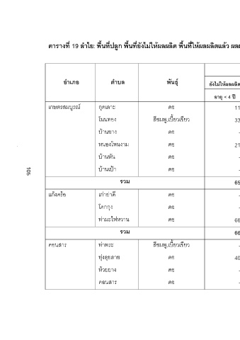 ยังไมใหผลผลิต ใหผลผลิตแลว รวม เฉลี่ย รวมทั้งหมด ตัน กก./ไร รวม อายุ > 12 ป อายุ 4-12 ป อายุ < 4 ป 60 552 120 109 - 109 11 140 438 353 320 - 320 33 54 469 115 115 - 115