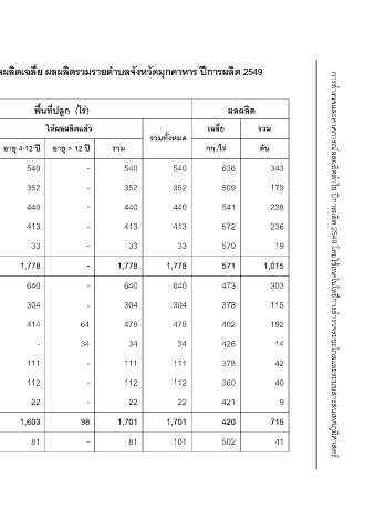 พื้นที่ปลูก (ไร) ใหผลผลิตแลว อายุ > 12 ป - - - - - - - - 64 34 - - - 98 -