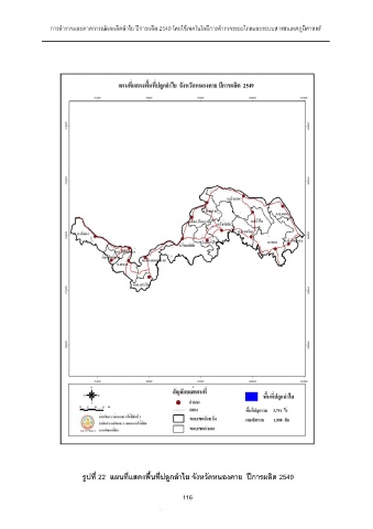 การสํารวจและคาดการณผลผลิตลําไย ปการผลิต 2549 โดยใชเทคโนโลยีการสํารวจระยะไกลและระบบสารสนเทศภูมิศาสตร รูปที่ 22 แผนที่แสดงพื้นที่ปลูกลําไย จังหวัดหนองคาย ปการผลิต 2549 116 116