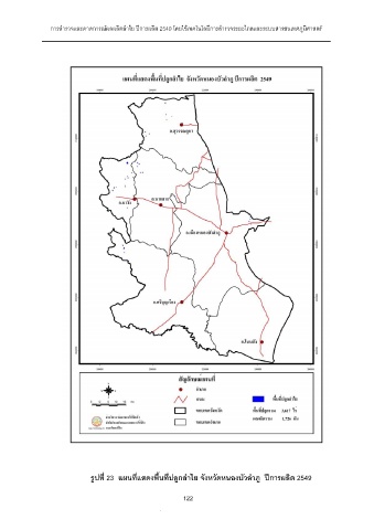 การสํารวจและคาดการณผลผลิตลําไย ปการผลิต 2549 โดยใชเทคโนโลยีการสํารวจระยะไกลและระบบสารสนเทศภูมิศาสตร รูปที่ 23 แผนที่แสดงพื้นที่ปลูกลําไย จังหวัดหนองบัวลําภู ปการผลิต 2549 122 122