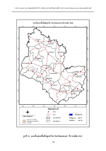 การสํารวจและคาดการณผลผลิตลําไย ปการผลิต 2549 โดยใชเทคโนโลยีการสํารวจระยะไกลและระบบสารสนเทศภูมิศาสตร รูปที่ 24 แผนที่แสดงพื้นที่ปลูกลําไย จังหวัดสกลนคร ปการผลิต 2549 125 125