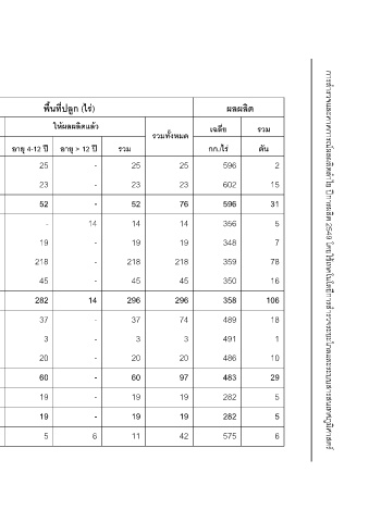 พื้นที่ปลูก (ไร) ใหผลผลิตแลว อายุ > 12 ป - - - 14 - - - 14 - - - - - - 6