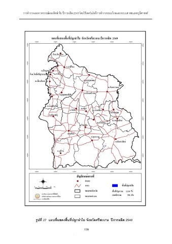การสํารวจและคาดการณผลผลิตลําไย ปการผลิต 2549 โดยใชเทคโนโลยีการสํารวจระยะไกลและระบบสารสนเทศภูมิศาสตร รูปที่ 27 แผนที่แสดงพื้นที่ปลูกลําไย จังหวัดศรีสะเกษ ปการผลิต 2549 139 139