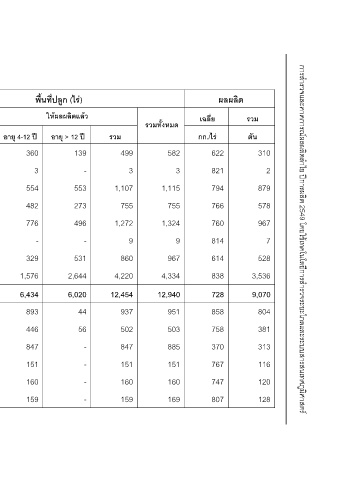 พื้นที่ปลูก (ไร) ใหผลผลิตแลว อายุ > 12 ป 139 - 553 273 496 - 531 2,644 6,020 44 56 - - - -