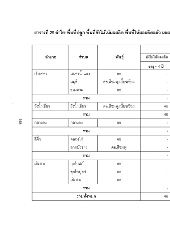 ยังไมใหผลผลิต ใหผลผลิตแลว รวม เฉลี่ย รวมทั้งหมด ตัน กก./ไร รวม อายุ > 12 ป อายุ 4-12 ป อายุ < 4 ป 21 380 56 56 - 56 - 243 399 608 608 608 - - 14 588 24 24 - 24 - 278 404 688 688 608 80 - 148 336 485 439 287 152 46 148 336 485 439 287 152 46 282 588 480 480 - 480 - 282 588 480 480 - 480 - 6 374 17 17 7
