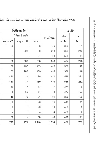 พื้นที่ปลูก (ไร) ใหผลผลิตแลว อายุ > 12 ป 608 608 287 287 - 7 69 76 - 971