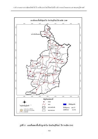 การสํารวจและคาดการณผลผลิตลําไย ปการผลิต 2549 โดยใชเทคโนโลยีการสํารวจระยะไกลและระบบสารสนเทศภูมิศาสตร รูปที่ 31 แผนที่แสดงพื้นที่ปลูกลําไย จังหวัดบุรีรัมย ปการผลิต 2549 153 153