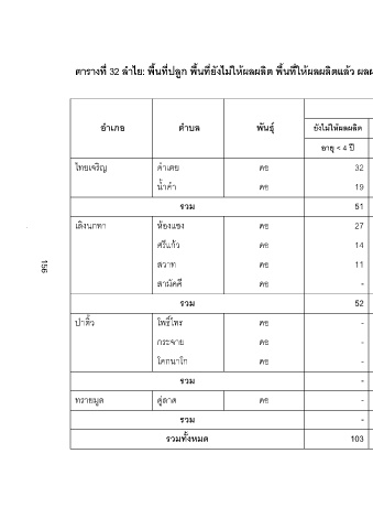 ยังไมใหผลผลิต รวม เฉลี่ย ใหผลผลิตแลว รวมทั้งหมด ตัน กก./ไร รวม อายุ > 12 ป อายุ 4-12 ป อายุ < 4 ป 50 684 105 73 - 73 32 - - 19 - - - 19 50 684 124 73 - 73