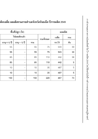พื้นที่ปลูก (ไร) ใหผลผลิตแลว อายุ > 12 ป - - - - - - -
