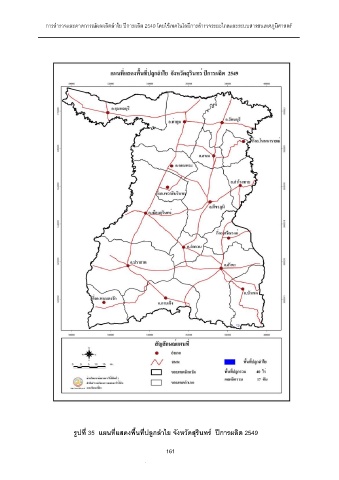 การสํารวจและคาดการณผลผลิตลําไย ปการผลิต 2549 โดยใชเทคโนโลยีการสํารวจระยะไกลและระบบสารสนเทศภูมิศาสตร รูปที่ 35 แผนที่แสดงพื้นที่ปลูกลําไย จังหวัดสุรินทร ปการผลิต 2549 161 161