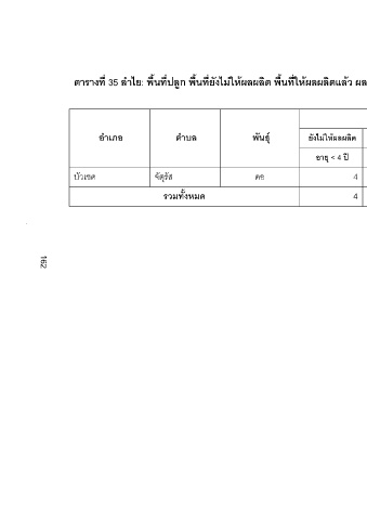 ยังไมใหผลผลิต รวม เฉลี่ย ใหผลผลิตแลว รวมทั้งหมด ตัน กก./ไร รวม อายุ > 12 ป อายุ 4-12 ป อายุ < 4 ป 17 472 40 36 - 36 4 17 472 40 36 - 36 4