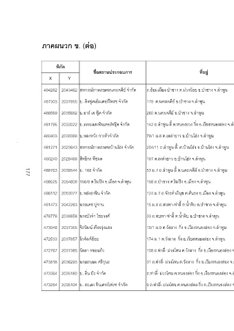ภาคผนวก ข. (ตอ) พิกัด Y 2043462 2037855 2035682 2033022 2030068 2023643 สิทธิกร พืชผล 2029468 บ. 168 จํากัด 2039544 2054608 2053077 นายเดช ปูจาน 2042263 2039858 2037355 โกดังเจออย 2037857 2037385 2036293 2035180 2035104