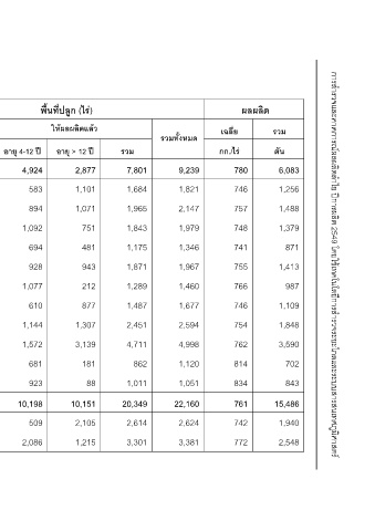 พื้นที่ปลูก (ไร) ใหผลผลิตแลว อายุ > 12 ป 2,877 1,101 1,071 751 481 943 212 877 1,307 3,139 181 88 10,151 2,105 1,215