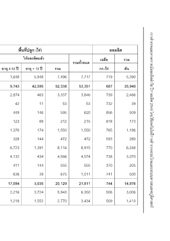 พื้นที่ปลูก (ไร) ใหผลผลิตแลว อายุ > 12 ป 5,848 42,595 463 11 146 89 174 144 1,391 434 144 39 3,035 3,724 1,552