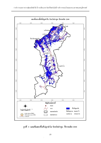 การสํารวจและคาดการณผลผลิตลําไย ปการผลิต 2549 โดยใชเทคโนโลยีการสํารวจระยะไกลและระบบสารสนเทศภูมิศาสตร รูปที่ 4 แผนที่แสดงพื้นที่ปลูกลําไย จังหวัดลําพูน ปการผลิต 2549 23 23