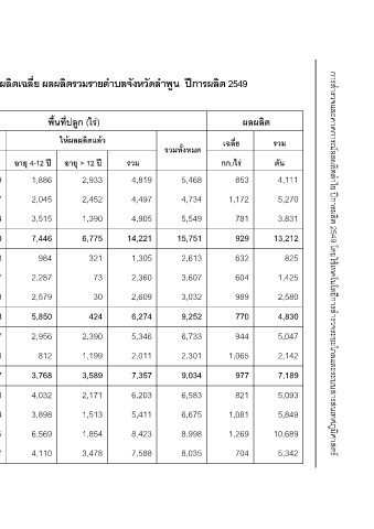 พื้นที่ปลูก (ไร) ใหผลผลิตแลว อายุ > 12 ป 2,933 2,452 1,390 6,775 321 73 30 424 2,390 1,199 3,589 2,171 1,513 1,854 3,478