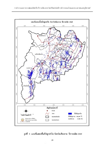 การสํารวจและคาดการณผลผลิตลําไย ปการผลิต 2549 โดยใชเทคโนโลยีการสํารวจระยะไกลและระบบสารสนเทศภูมิศาสตร รูปที่ 5 แผนที่แสดงพื้นที่ปลูกลําไย จังหวัดเชียงราย ปการผลิต 2549 28 28