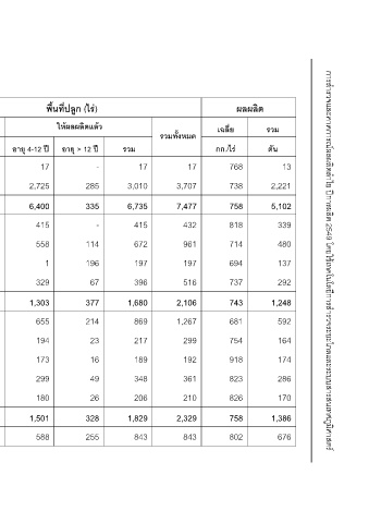 พื้นที่ปลูก (ไร) ใหผลผลิตแลว อายุ > 12 ป - 285 335 - 114 196 67 377 214 23 16 49 26 328 255